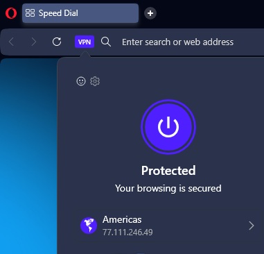 2. Enable the built-in VPN by clicking the VPN badge in the address bar