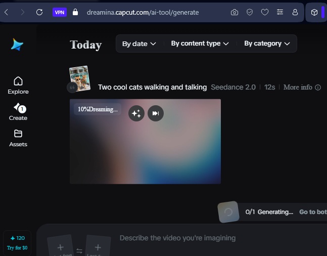 1. Navigate to https://dreamina.capcut.com/ in Opera with VPN enabled