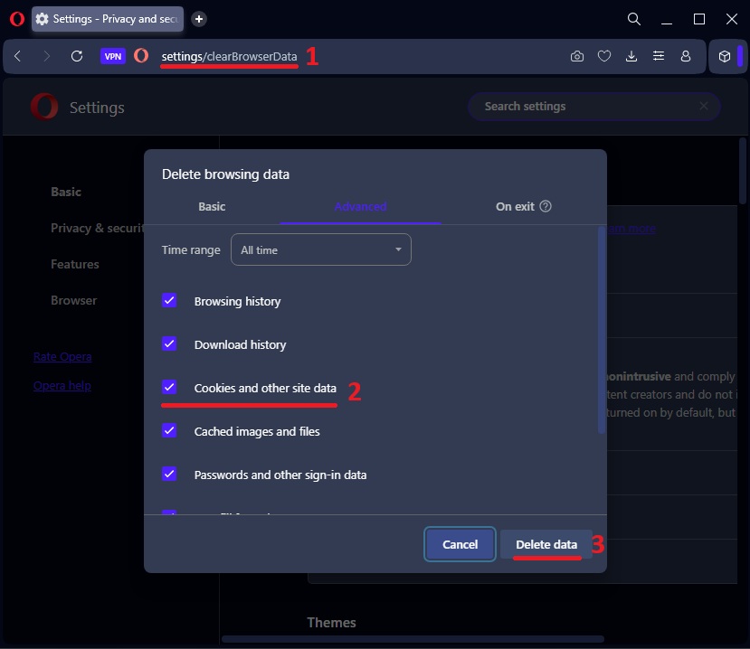 opera://settings/clearBrowserData(orchrome://settings/clearBrowserDatafor Chrome)1 - Press