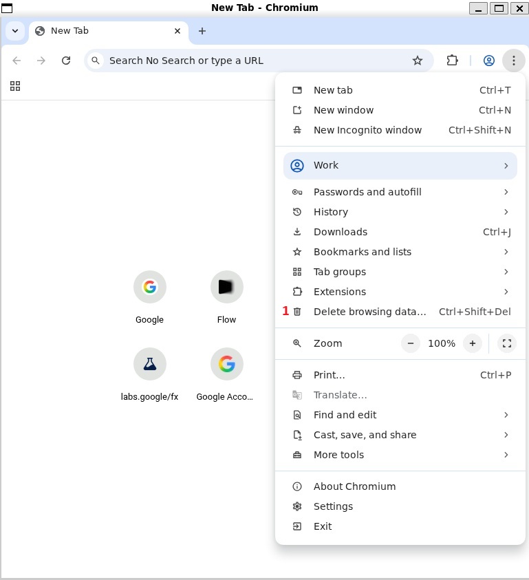Launch Chromium-based web-browser of your choice (eg Opera, Brave, Chromium or Chrome) and clear all cookies. It is very important that you start absolutely fresh and obtain fresh Google Flow cookies.