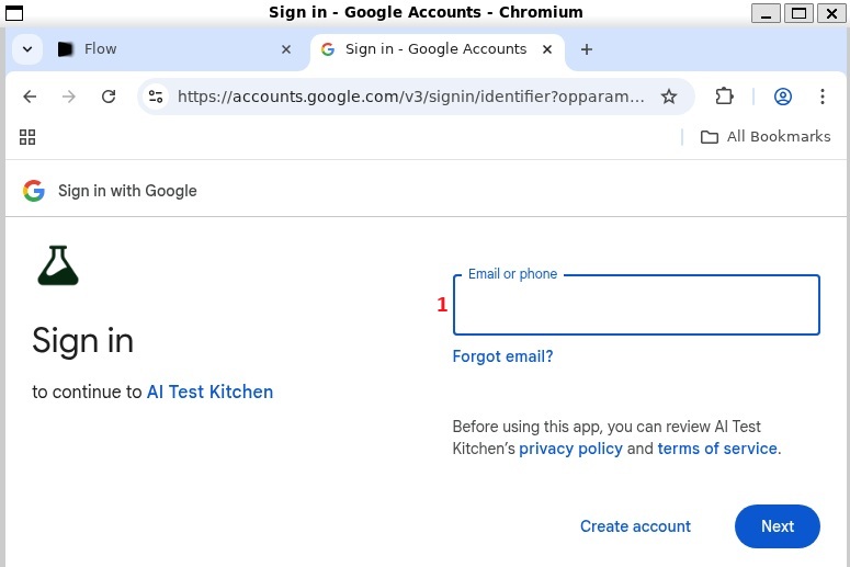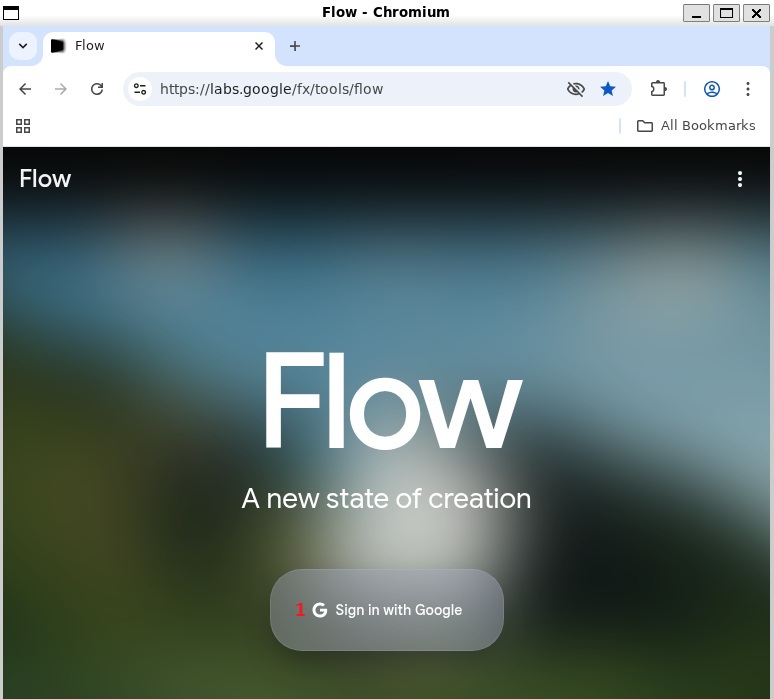 Navigate to https://labs.google/fx/tools/flow and click on Sign in with Google button 1