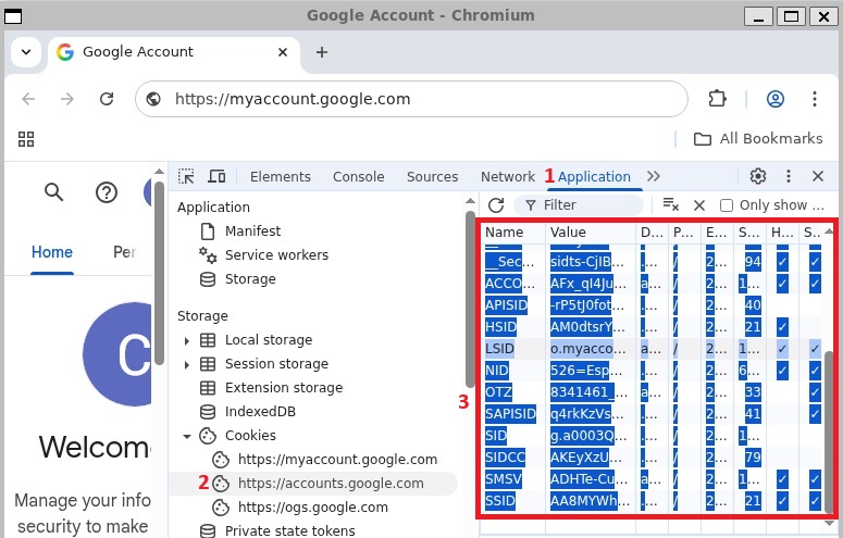 • Select all cookies in the right panel and copy them to the clipboard (Control+A and Control+C on Windows) 3.