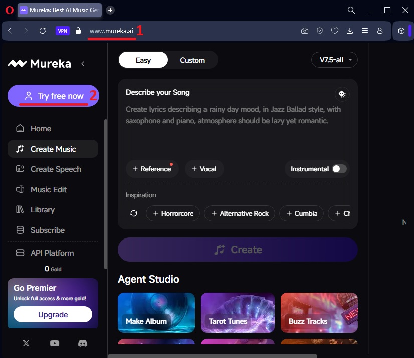 - Navigate to https://www.mureka.ai