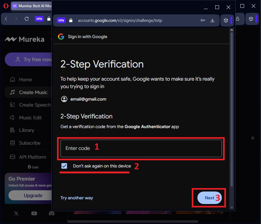 - Navigate to Mureka and login with Google