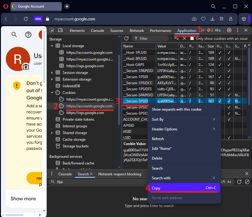 Copy __Secure-3PSID cookie